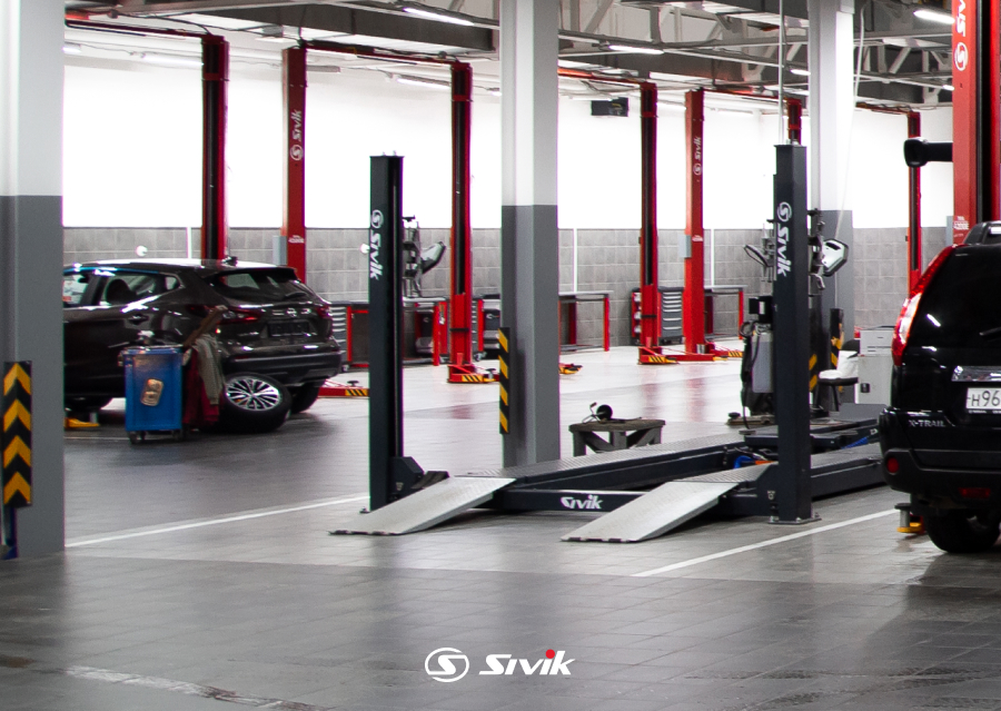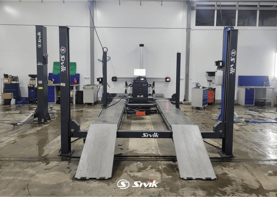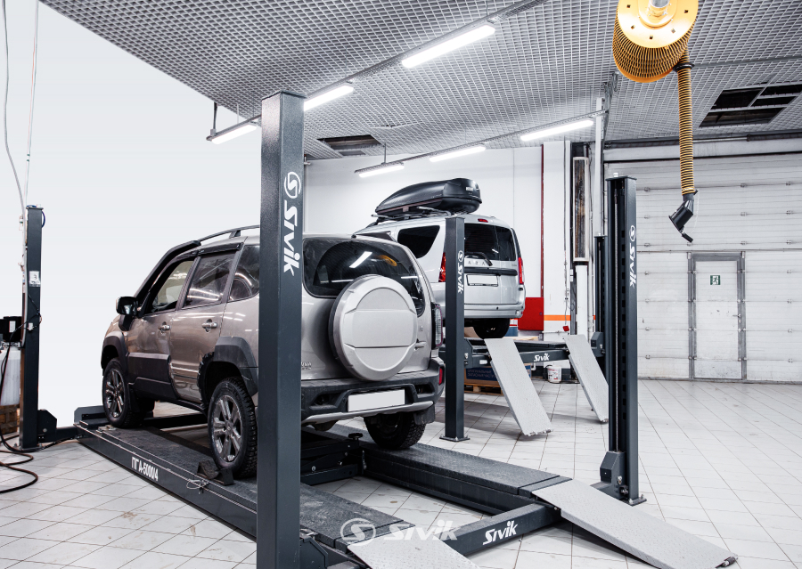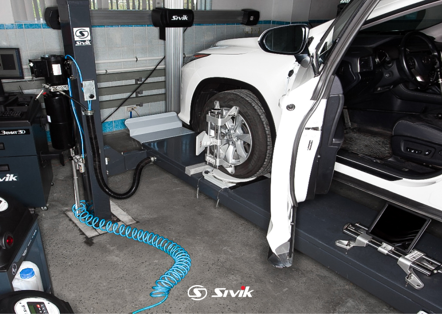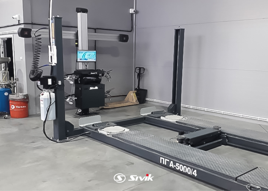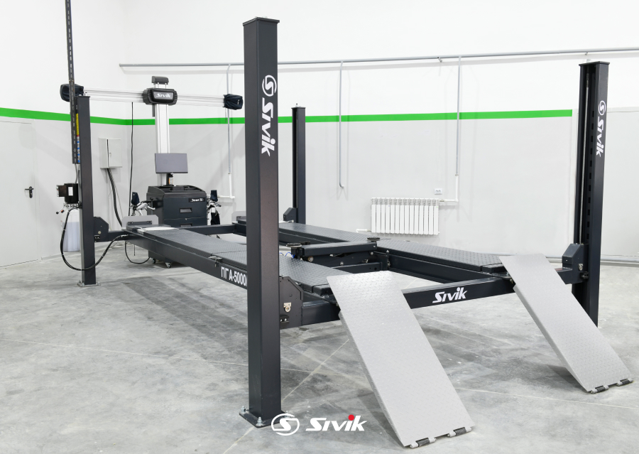 • Оснащение подъемника дает возможность производить регулировку развал/схождения, ремонт тормозной и рулевой систем, и другие работы