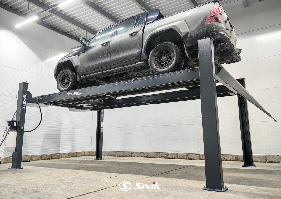 • Удлиненный четырехстоечный подъемник общей массой до 6,5 тонн