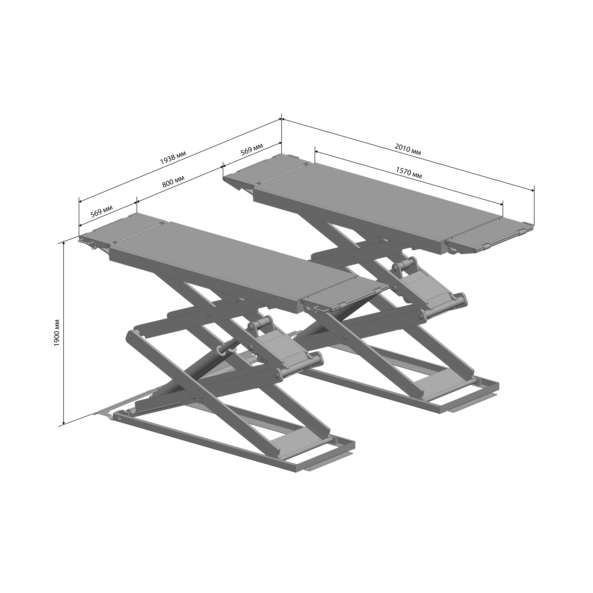 • Предназначен для подъема автомобилей общей массой до 3,0 т • Максимальная высота подъема - 1900 мм