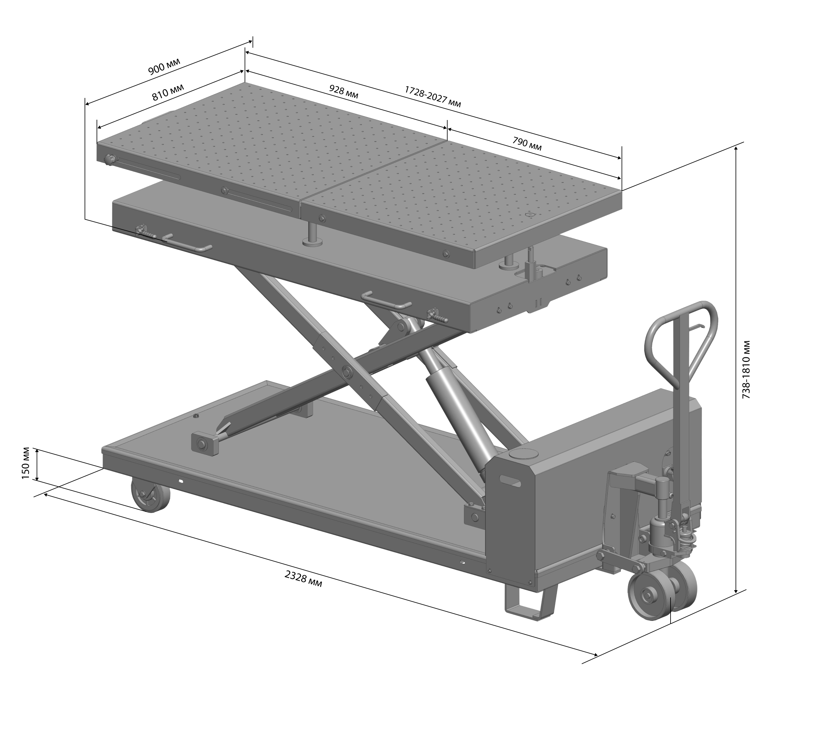 Мин. высота подъема, мм 738