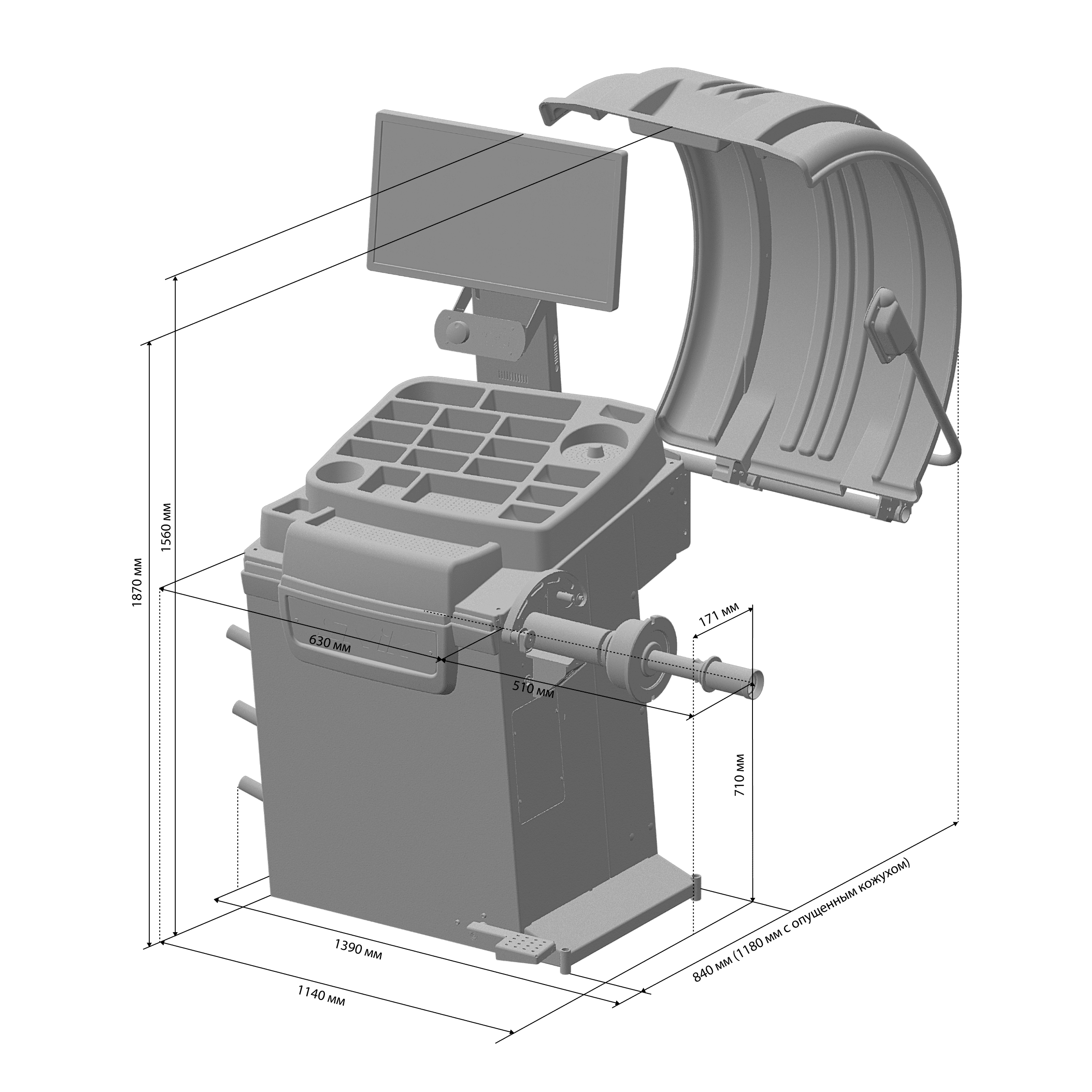 • Балансировка экстремальных грязевых колес (при открытом кожухе до 39” , при закрытом кожухе до 37”)